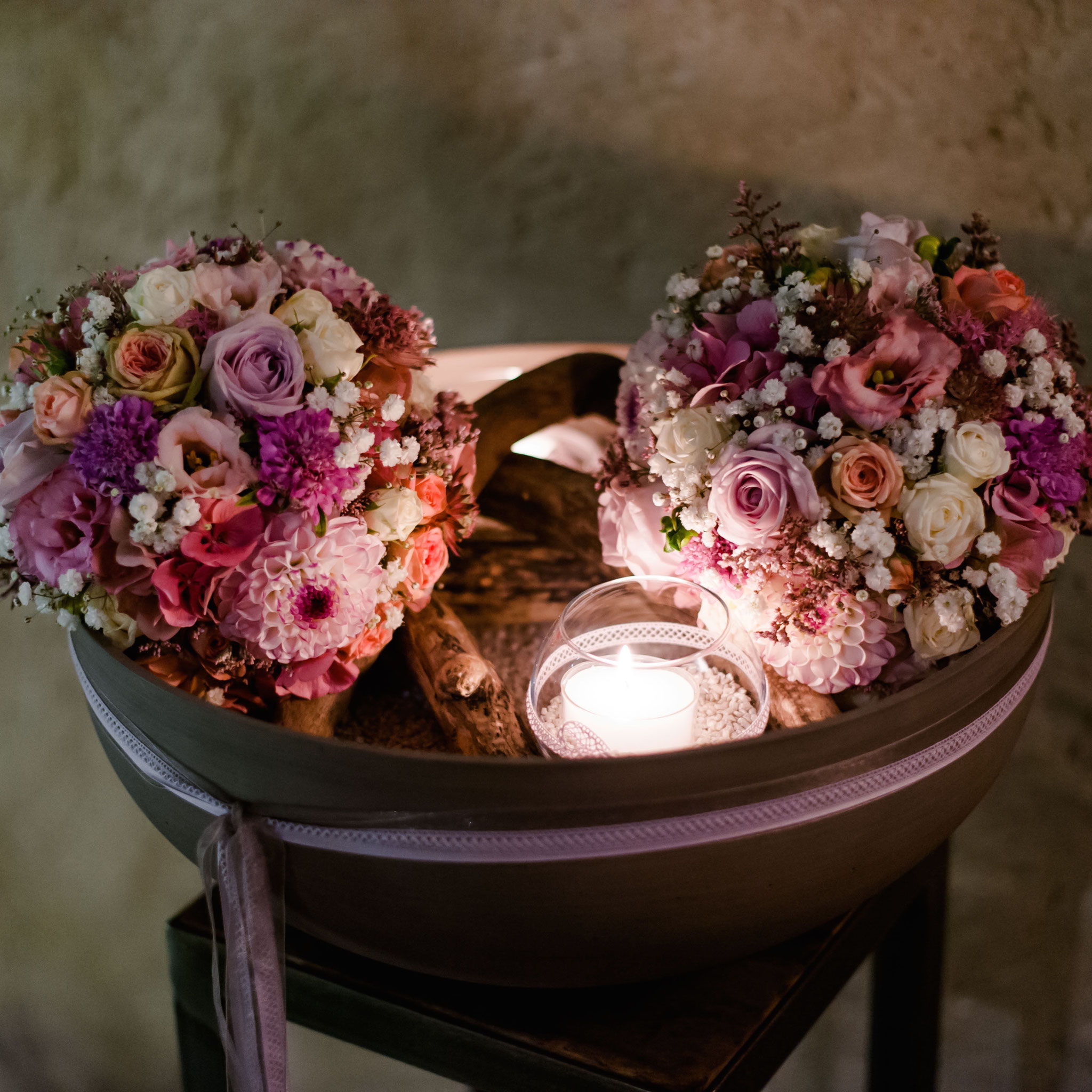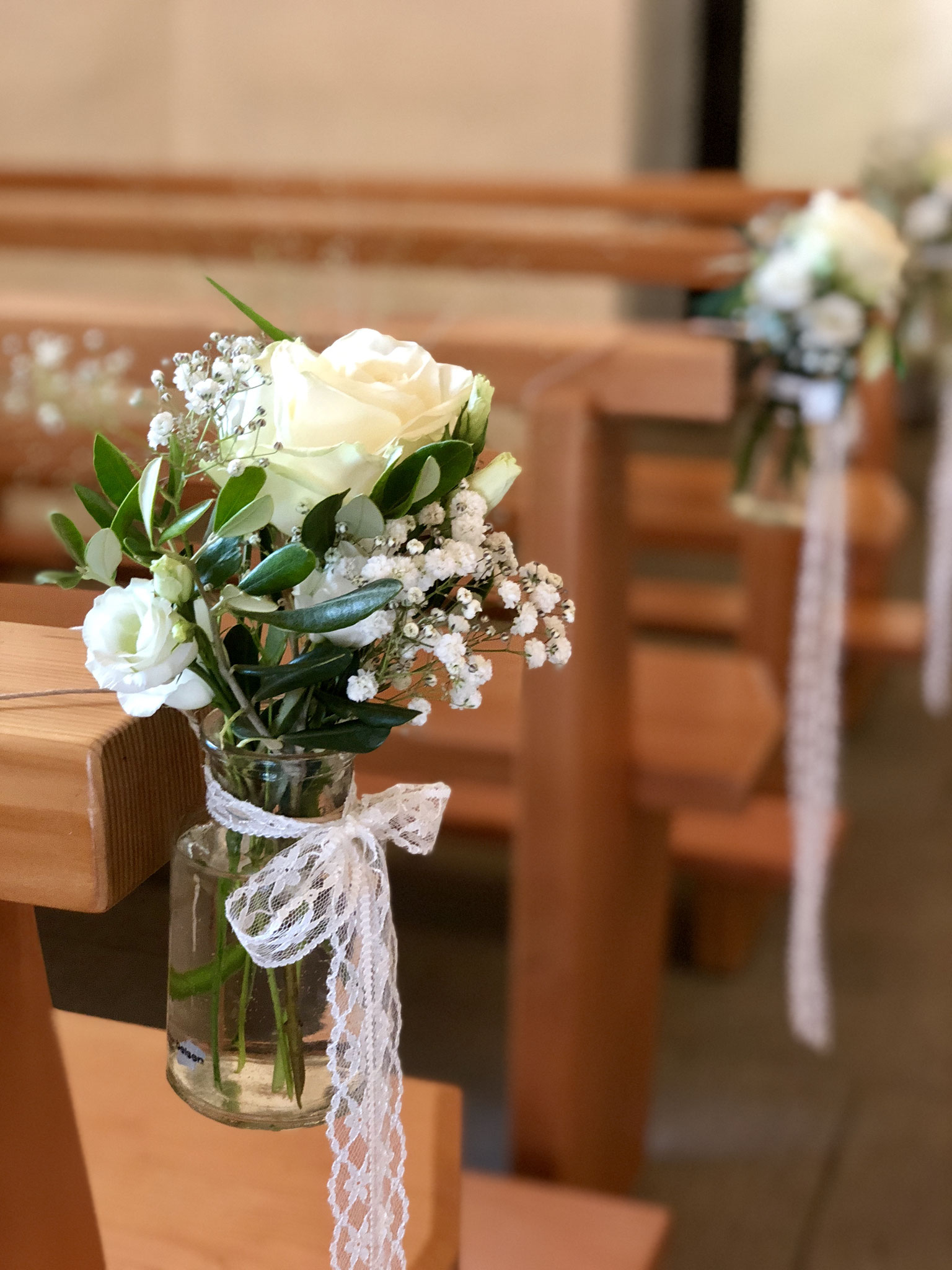Vom Brautstrauss über Kirchenschmuck, Restaurantdeko, Autoschmuck bis hin zum Ringkissen...